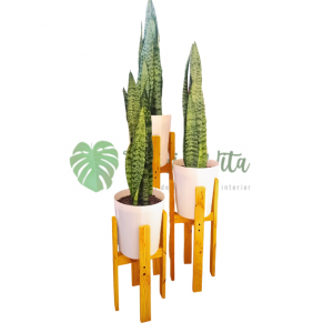 Juego de 3 sets de Sansevierias Laurentii + bases madera café oscuro