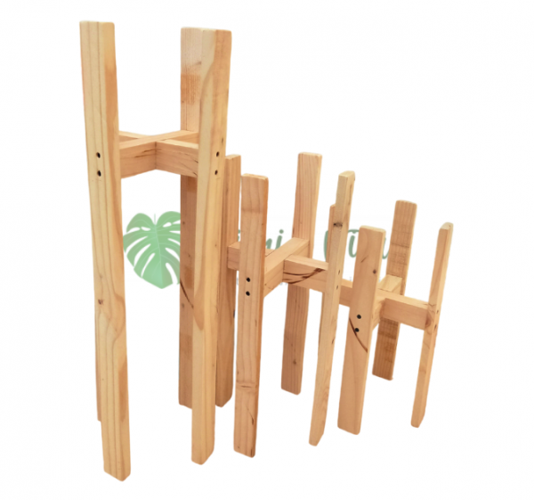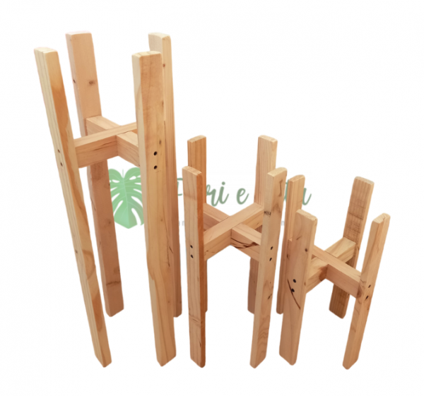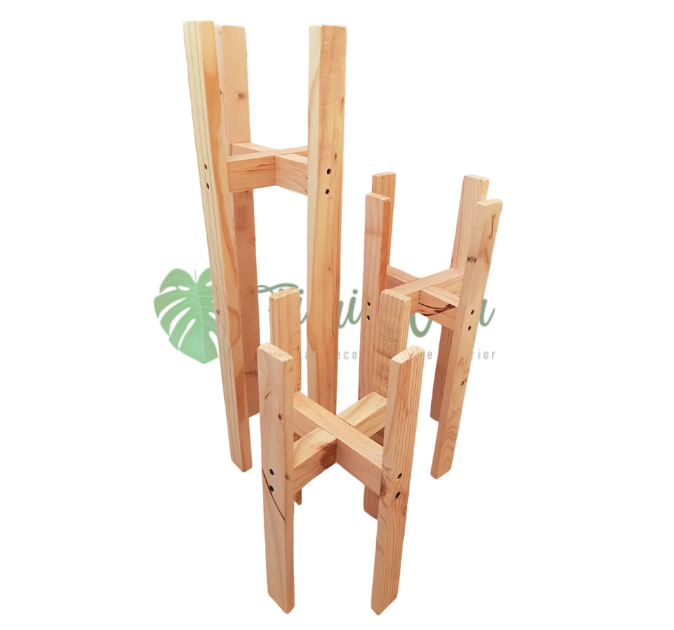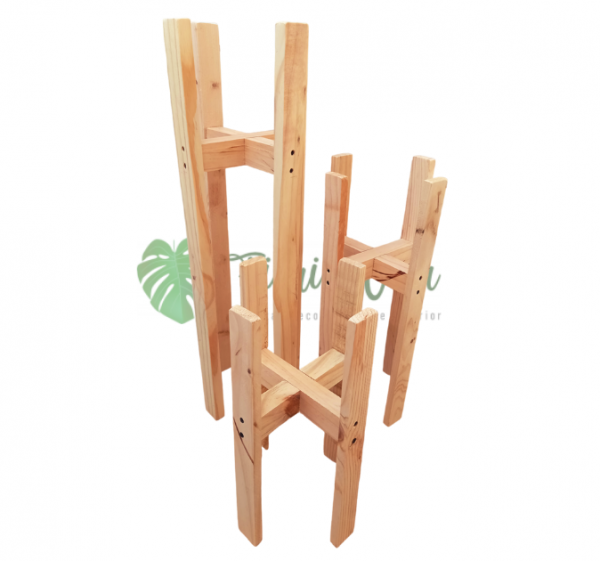 Set de 3 bases o soportes para macetas, hechas de madera de pino, tono natural