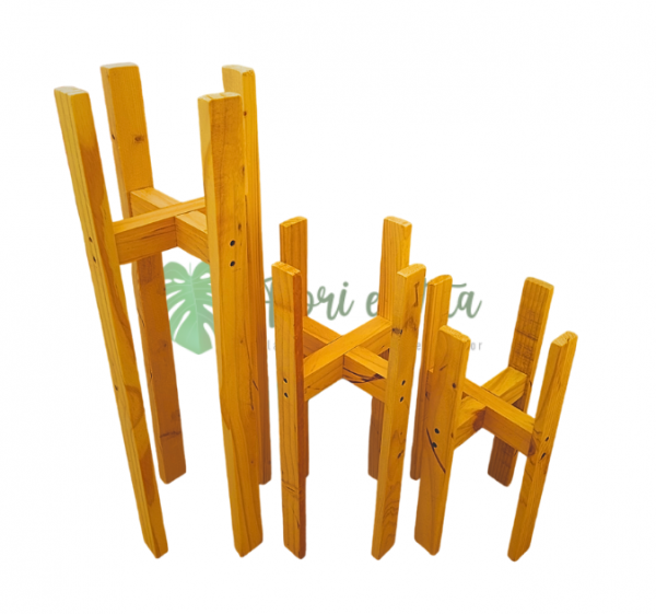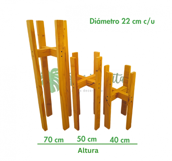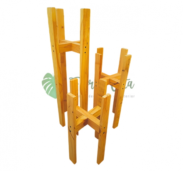 Set de 3 bases o soportes para macetas, hechas de madera de pino, color Roble Claro